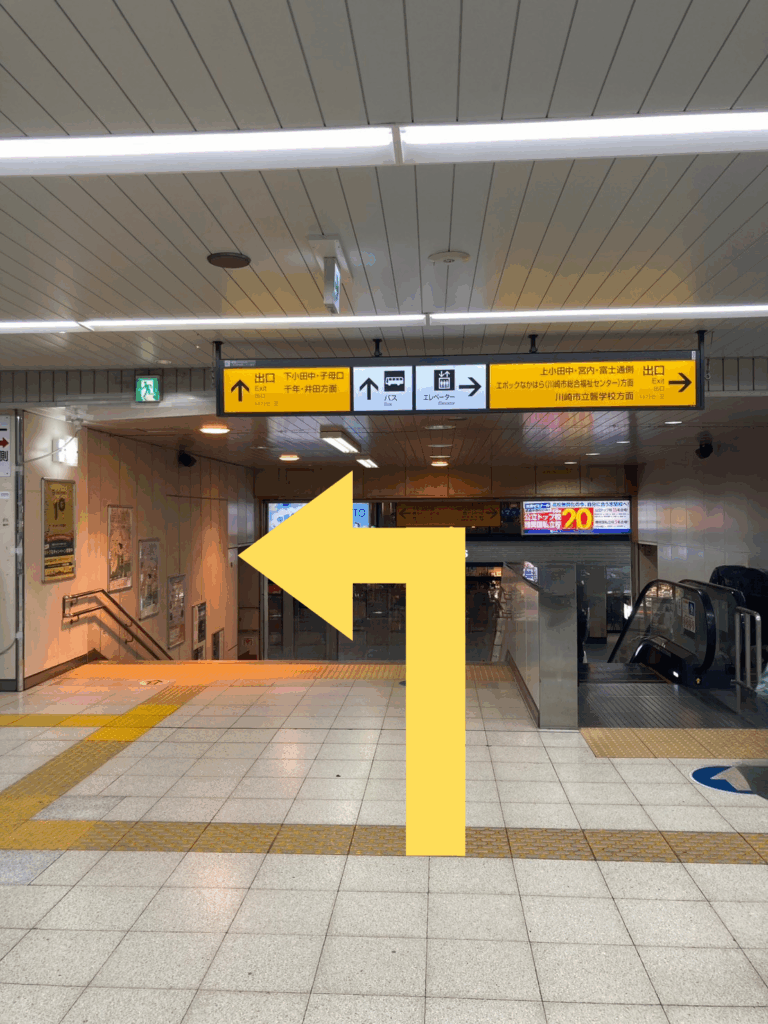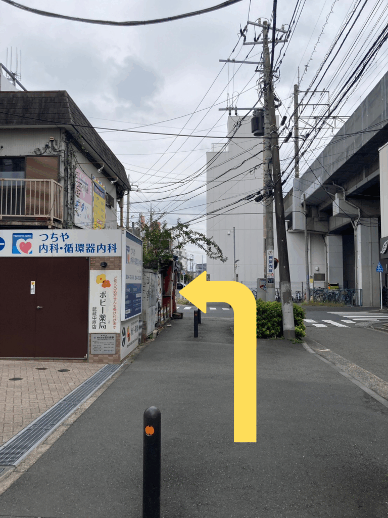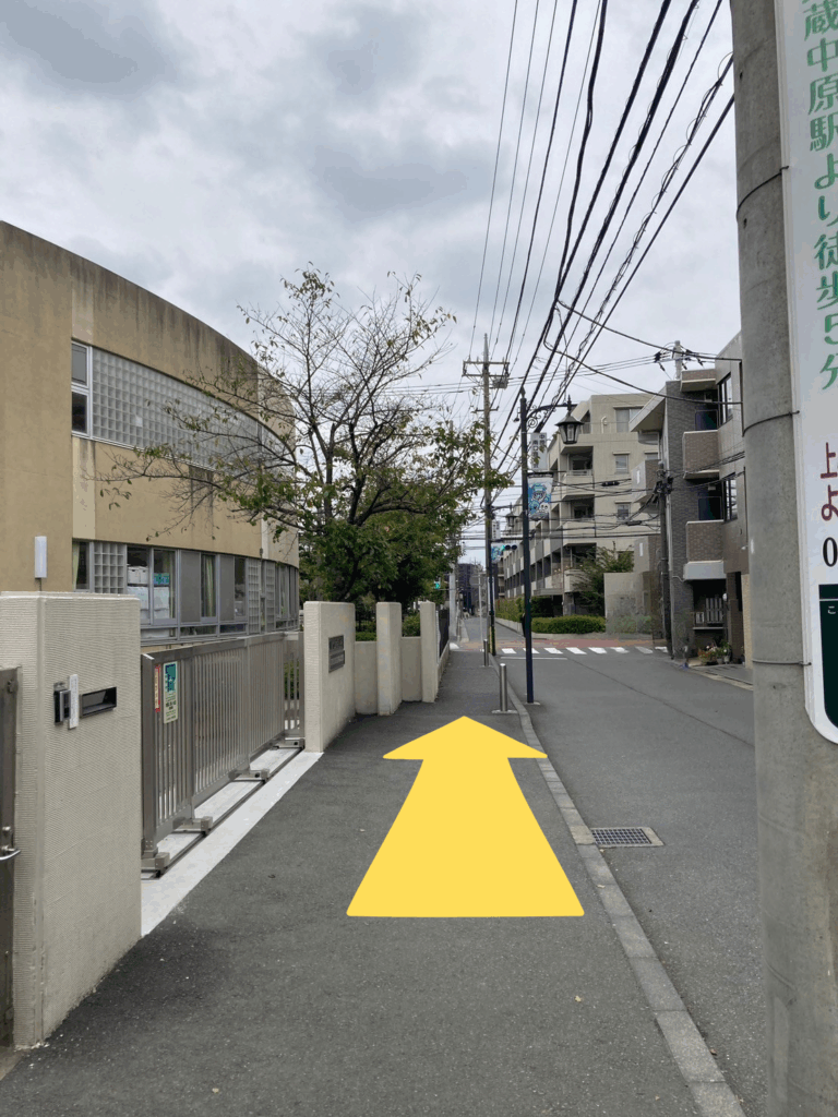 武蔵中原駅の改札を出て左、下小田中方面へ