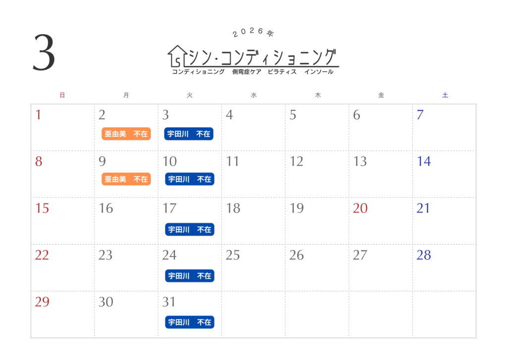 3月の2日((月))・9日(月)は臨時のお休みです。